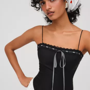 Black and White Patchwork Spaghetti Strap Mini Dress